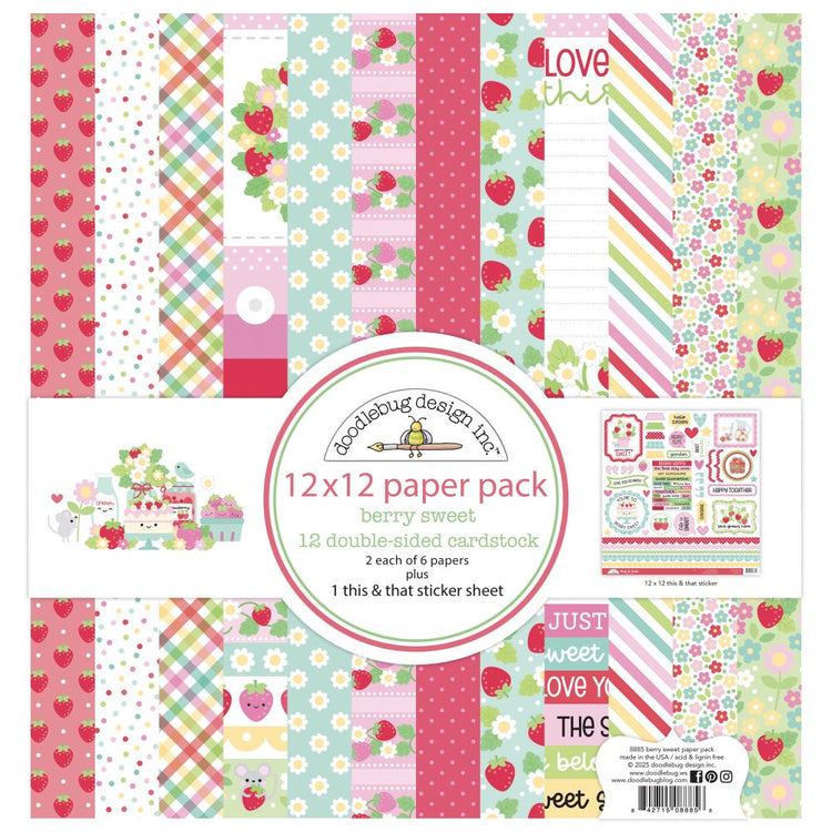 Doodlebug Double-Sided Paper Pack 12"X12" 12/Pkg Berry Sweet