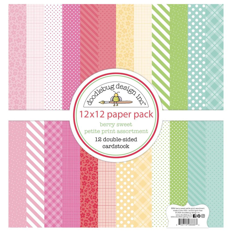 Doodlebug Petite Prints Double-Sided Cardstock 12"X12" Berry Sweet