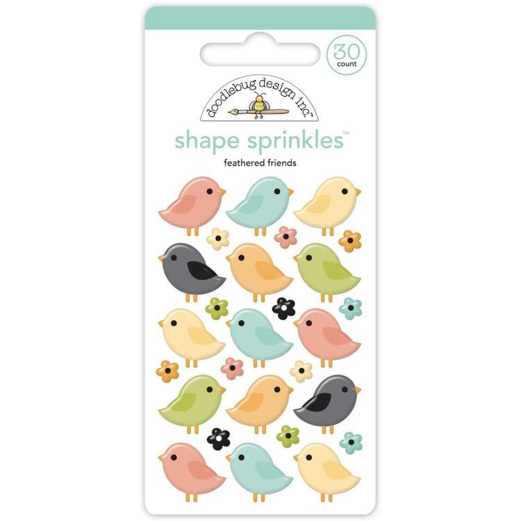 Doodlebug Sprinkles Adhesive Enamel Shapes Feathered Friends, Farmhouse