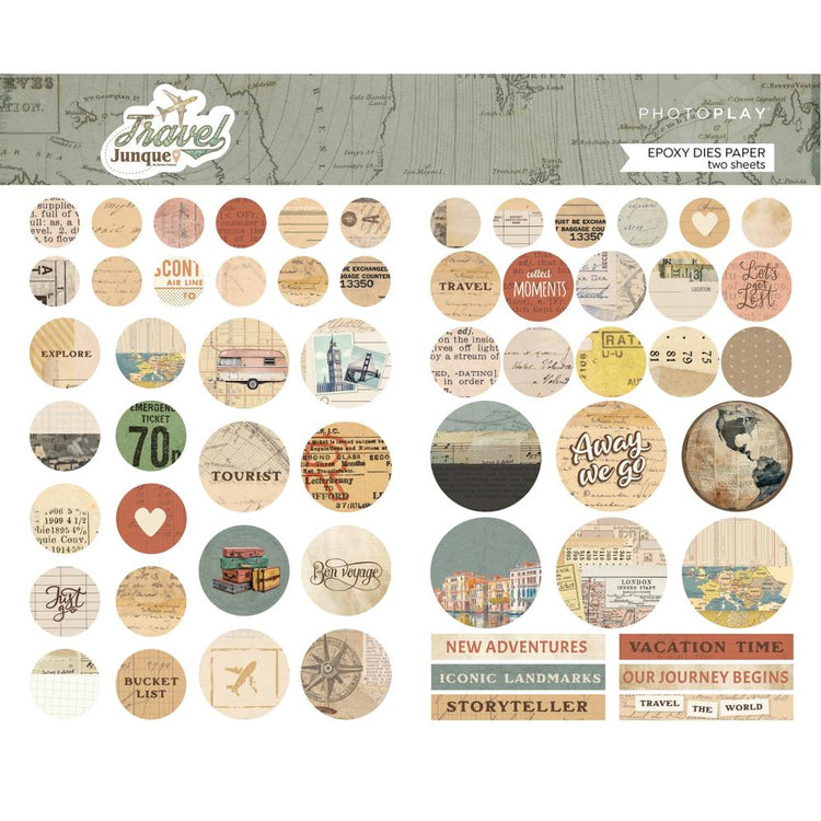 PhotoPlay Pre-Colored Epoxy Dies Paper Pack 12"X12" Travel Junque