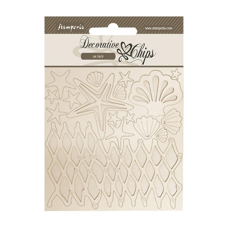 Stamperia Decorative Chips 5.5"X5.5" Silent Sea Shells And Net
