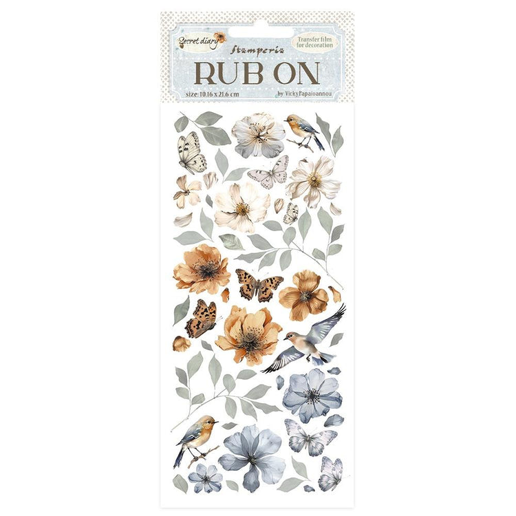 Stamperia Rub-On 4"X8.5" Happiness Secret Diary Flowers & Birds