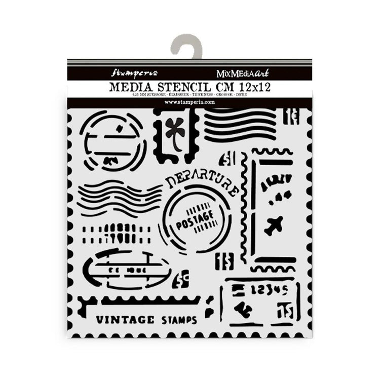 Stamperia Stencil 4.72"X 4.72" Art of Traveling Stamps