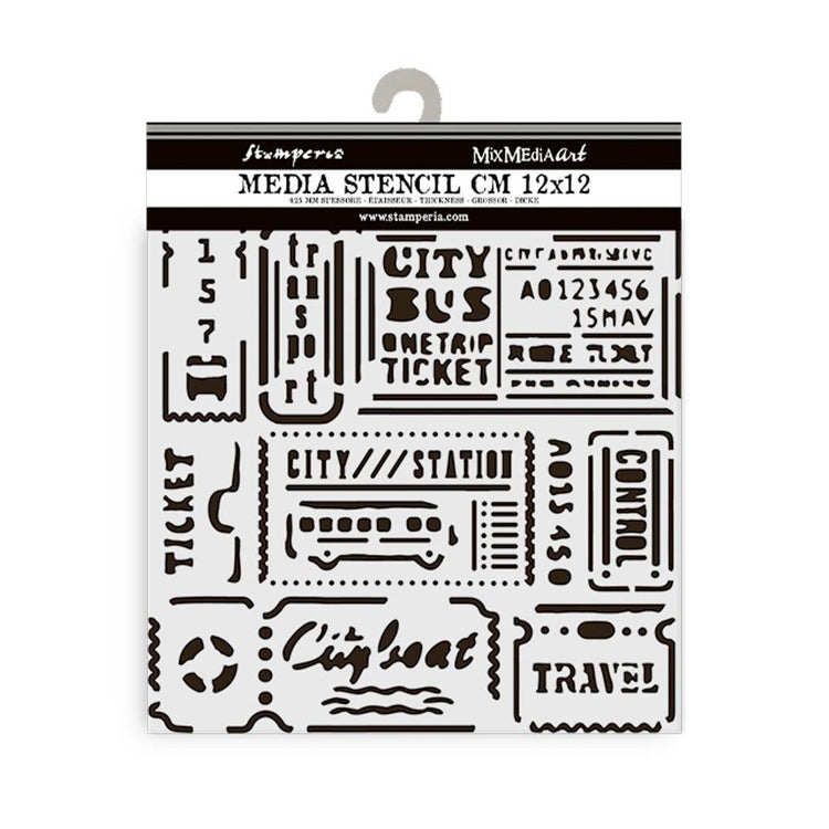 Stamperia Stencil 4.72"X 4.72" Art of Traveling Tickets