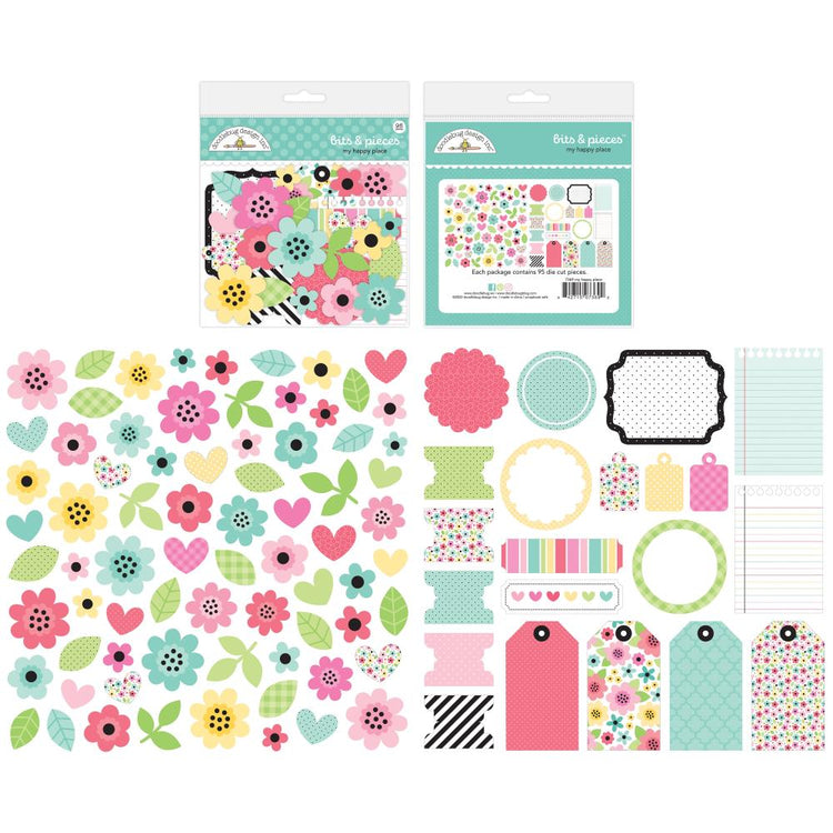 Create fun greeting cards and scrapbook pages with Doodlebug Odds & Ends Bits & Pieces Die Cuts. Package includes My Happy Place