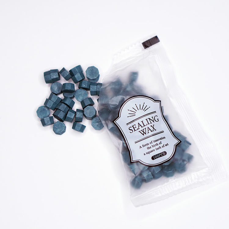 Each bag contains approximately 100 wax beads. To make a wax seal of roughly 1”, you will need 3-6 wax beads. Blue iron color.