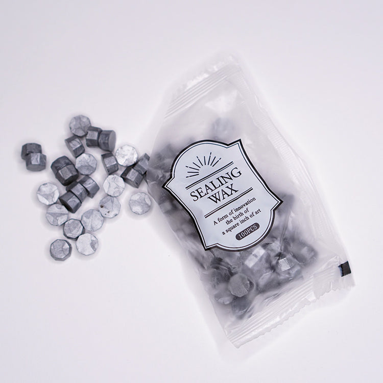 Each bag contains approximately 100 wax beads. To make a wax seal of roughly 1”, you will need 3-6 wax beads. Silver color.