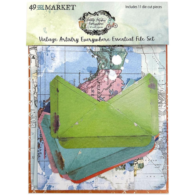 11 double-sided die-cut pieces. Pack is comprised of 3 file folders (folded measures 4.75x6.25 inches); 1 double-pocket (6.25x8.25 inches); 2 angled pockets (when scored measure 5.75x7.75 inches) and 5 envelope pockets (when scored measure 4.25x2.75 inches). These pieces can be used in mini albums or layouts to hold treasured pieces or additional photos. Imported.